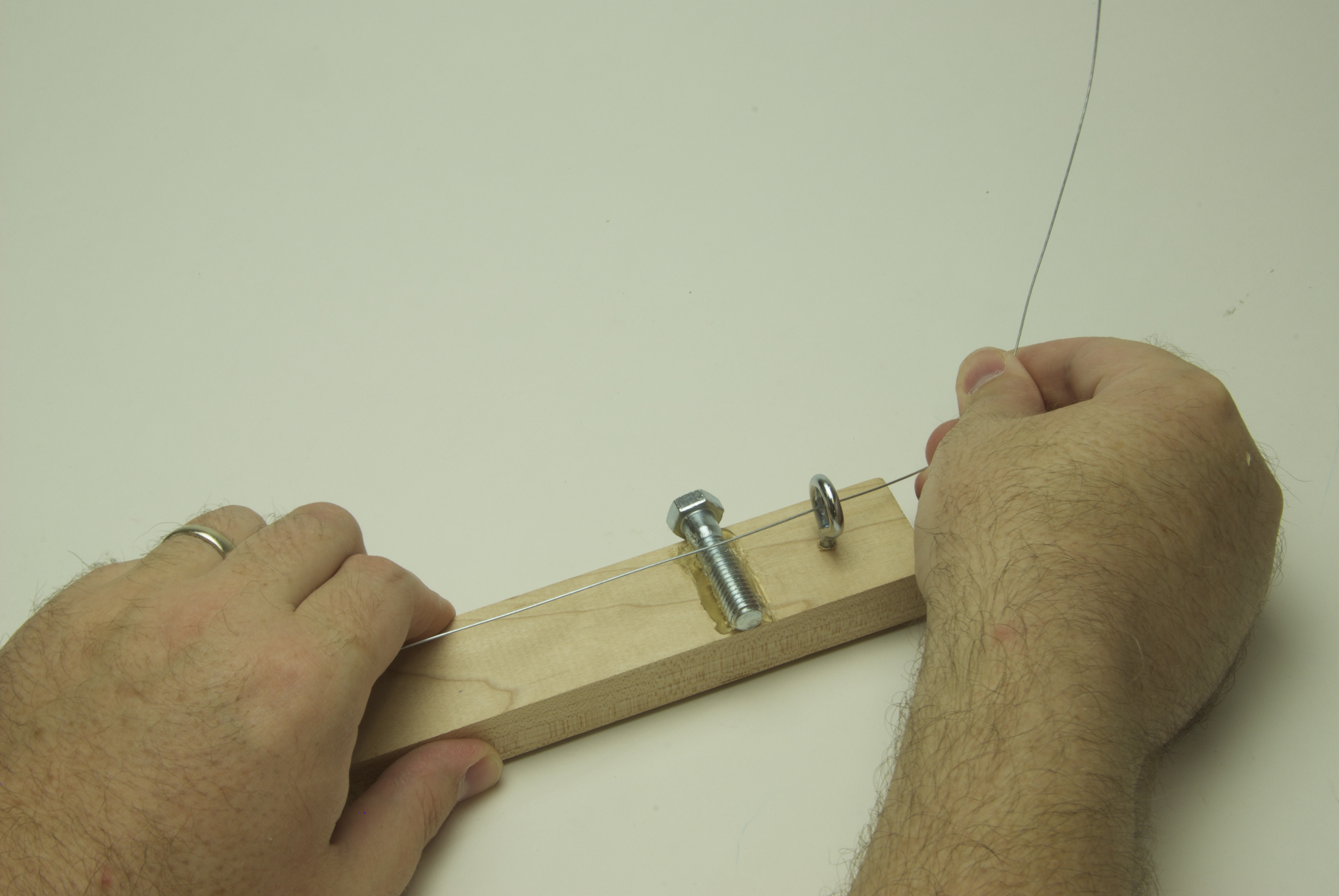 This is the dangerous part! We are going to tighten the string so it will make a tone, but overtightening can break the string and make it whip around. Wear safety glasses.