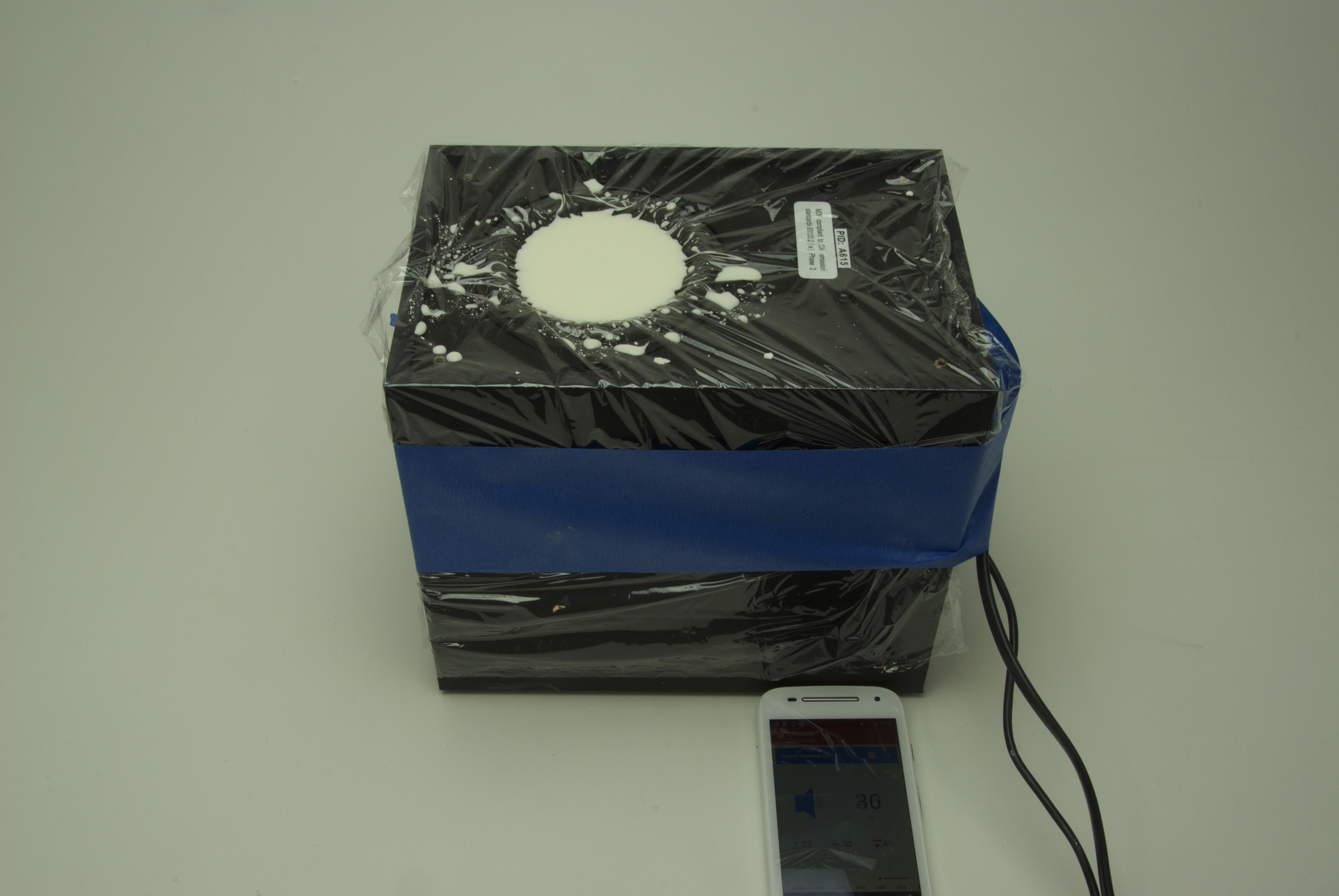 Plug your phone or laptop into the subwoofer with the volume on the speakers turned all the way down. While this all can run on one phone, you must be careful not to move it around when adjusting the tone generator while recording your experiments, or you will introduce external values into the measurement.