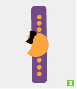 Insert the sensor’s legs as you did with the LEDs. Again, make sure that the sensor is facing the outside of the bracelet and that the legs are on the inside. Unlike the LEDs, the sensor does not have polarity, so it does not matter which leg goes through which hole. Again, please note that the light sensor in the illustration is shown on the inside of the bracelet for clarity. As a result, you can’t see the legs in this illustration.