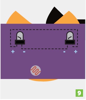 You’re almost done! Test the circuit by putting in a battery, closing the snaps, and covering the sensor. The eyes should light up.