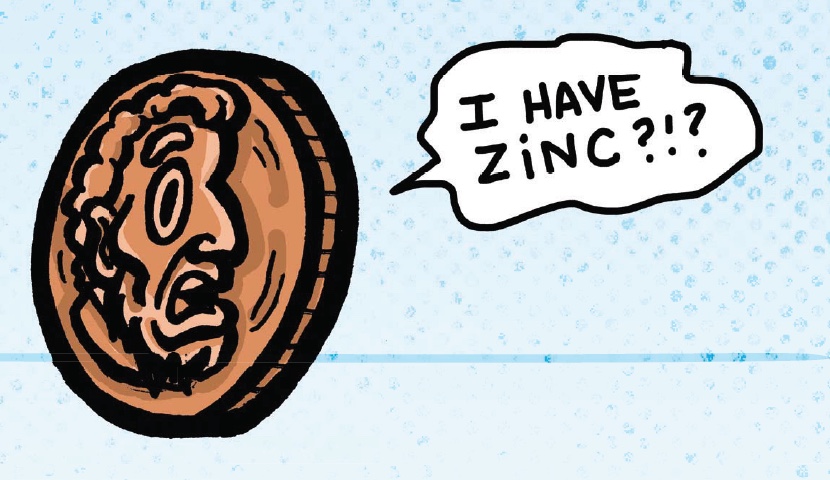 Put on your safety glasses and sand one side of each penny until it has a silver-looking finish. That’s the zinc! It could take a while to sand away the copper (brown finish), but the zinc is under there.