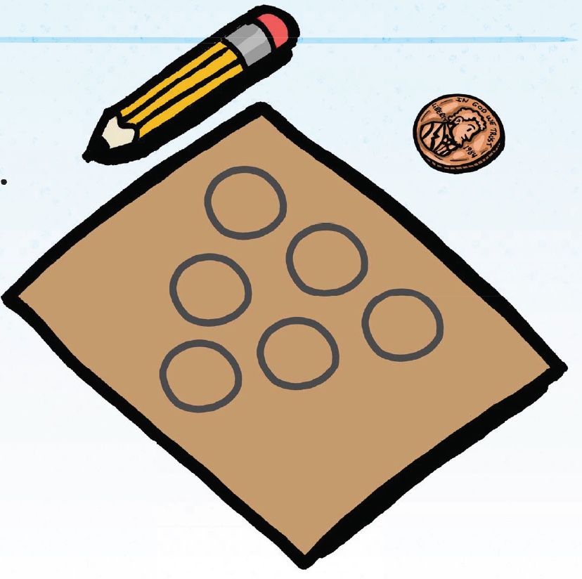 Place a penny on a piece of cardboard and trace around it six different times. Pour vinegar into the cup. Cut out the six cardboard circles and put them into the cup of vinegar.
