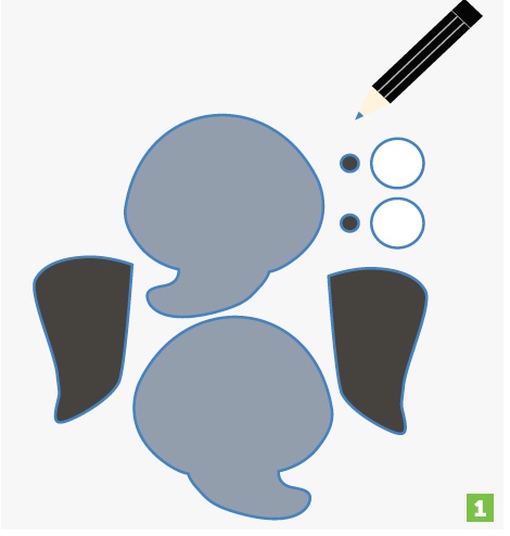 Based on your paper sketch, use a chalk pen to sketch the pieces of your character onto colored felt. Make sure to trace two copies of the main part that will house the circuit. One of them will be for covering the front of your circuit and one will be for the back.