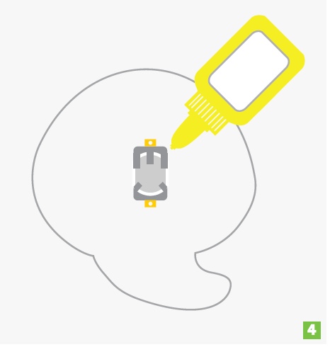 Flip over the back piece of felt and glue the battery holder to the outside of the back sheet. Make sure that the positive side of the battery holder is facing toward the top of your project.