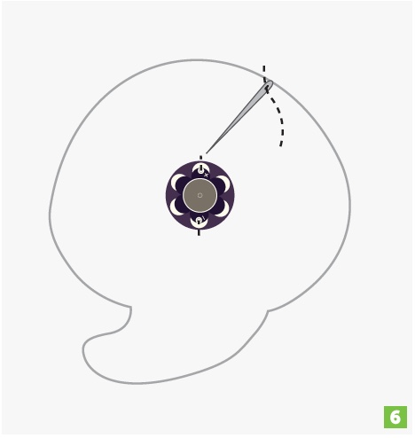 Using conductive thread, sew through the piece. Attach the positive side of the Vibe Board to the positive side of the battery holder. Do the same with the negative side. Remember that the battery holder will be on the outside of the back of your project, and the motor will be on the inside of the project.